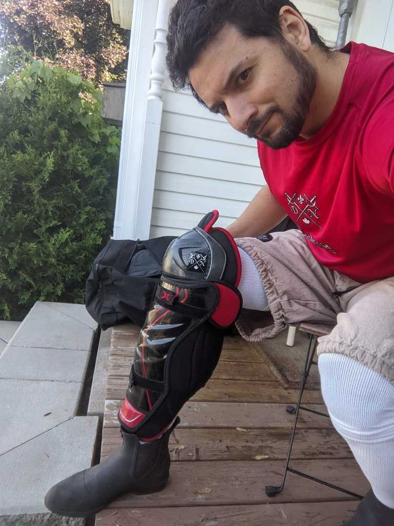Un protège-jambes est important pour les tournois et les combats très intenses (dans lesquels les tireurs acceptent d’inclure les jambes comme cible valable). La protection doit couvrir le genou et ses côtés, le tibia, une partie de la cheville et l’arrière de la jambe. Il y en a beaucoup sur le marché et je préfère toujours un bon protège-jambes pour hockey sur glace.