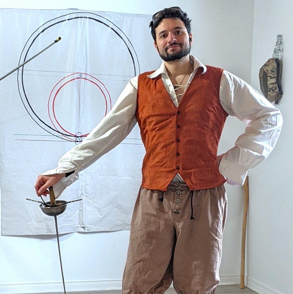 André a toujours eu une passion pour les arts martiaux ; il a fait du judo dans son enfance, et plus tard du Kung-Fu style coréen. En 2008, il a commencé à faire de l’escrime historique dans « AEAS », un club lié à « AEEA », la plus grande association d’escrime historique du monde à l’époque. Là, il a appris le style Verdadera Destreza Rapier Sword d’Aleix Basullas, un grand maître sage spécialisé dans le traité de Lorenz de Rada (1705). De plus, André a appris de Sendo Espinalt, un maître du style libre qui lui a enseigné la volonté du guerrier qui ne peut être apprise dans aucun livre. En 2015, André, avec Aleix, a cofondé le club AEACC et sa carrière d’escrimeur a commencé à avoir ses meilleurs moments en Europe. Plus tard, André a déménagé de l’Espagne au Canada où il a rejoint plusieurs clubs et est devenu instructeur de rapière à La Compagnie Médiévale, un club avec lequel il a collaboré pour créer les Montreal Sword Meisters, un ambitieux projet de tournois et d’ateliers à portée internationale. En 2022, André a fondé un club sur l’île de Laval: Club d’Escrime Historique Destreza Nova Laval. Cette organisation à but non lucratif vise à enseigner l’escrime historique et à inciter les gens à suivre des valeurs humaines humbles et de bonne nature.