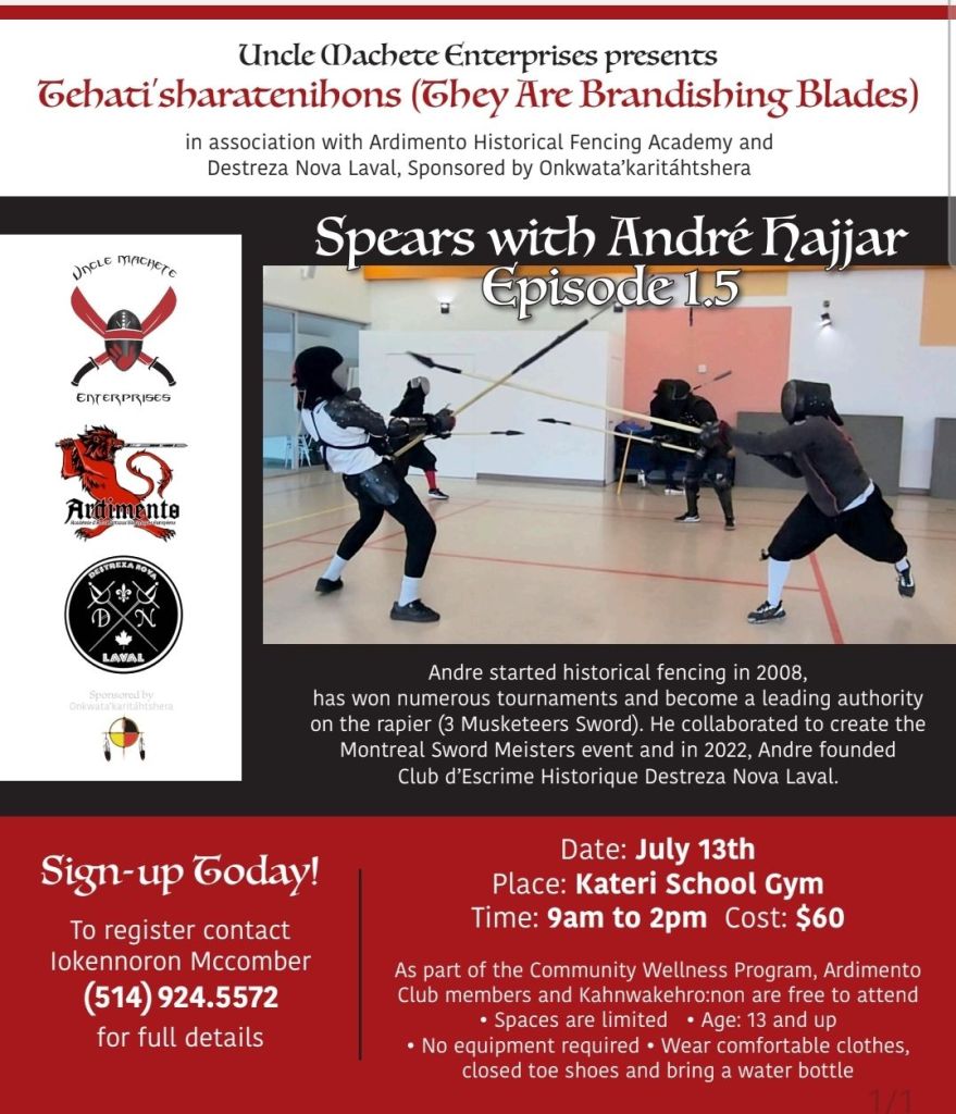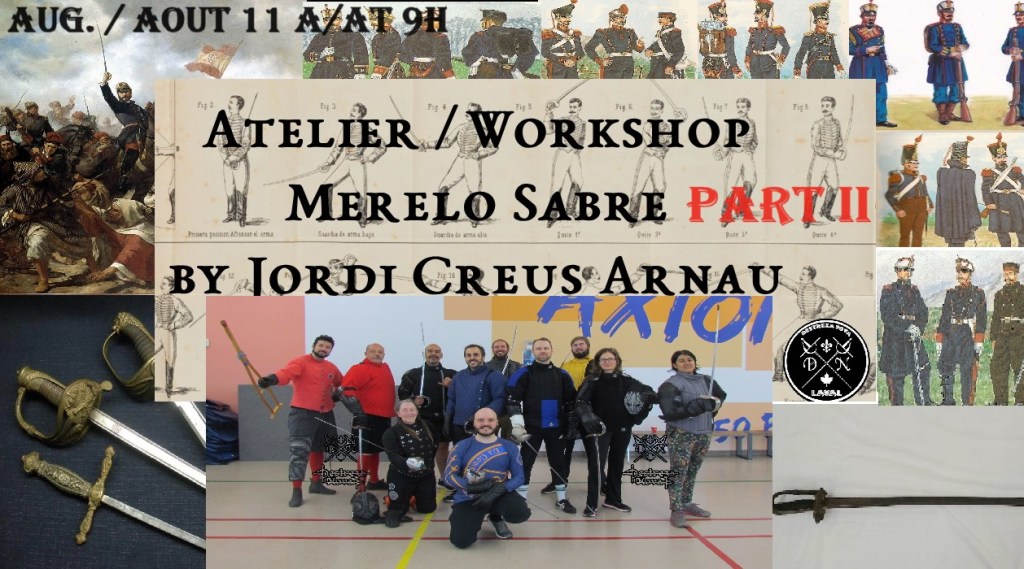Merelo Sabre Jordi. 4 heures d’atelier, beignets, café et climatisation fraîche pour affronter cette chaleur ! Faites-nous savoir si vous avez besoin d’un transport depuis Montmorency. Nous récupérons les gens à 8h30.« Quand j’entends ‘je ne peux pas’, j’entends seulement ‘je n’en veux pas assez’ ». – André Hajjar