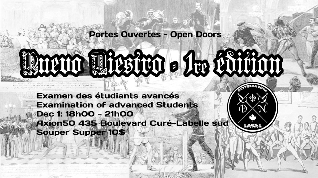 On the 7th of September Destreza Nova Laval opens doors and inscriptions in person. We will do some basic exercises for all the new fencers to know what is expected to be found in our club. Afterwards, advanced fencers from around Quebec and Ontario will come to show their skills and give a taste of what you can become.